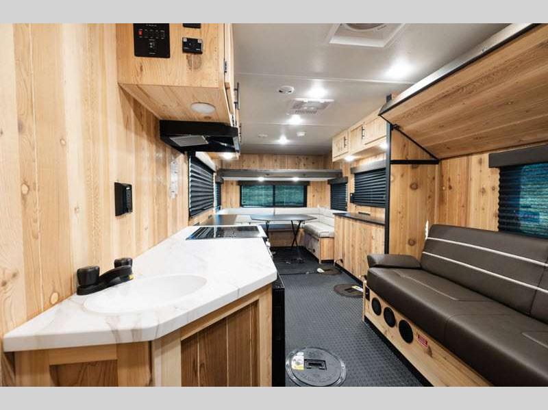 Sleeps 3 Length 27 ft Ext Width 8 ft Ext Height 10 ft 6 in Hitch Weight 495 lbs GVWR 5595 lbs Dry Weight 4748 lbs Cargo Capacity 847 lbs Fresh Water Capacity 15 gals Grey Water Capacity 12 gals Black Water Capacity 4.5 gals Furnace BTU 35000 btu Number Of Bunks 1 Refrigerator Type 12V Cooktop Burners 3 AC BTU 13500 btu Axle Count 1 Shower Type Standard Solar Wattage 400 watts Similar Floorplans