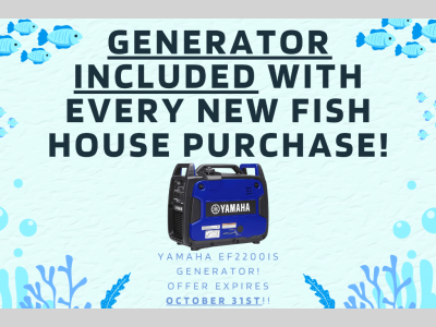 Come experience your next fishing trip in comfort and style with this Cherokee Grey Wolf fish house. You can visit with your family while relaxing on the sofa with a flip-up bunk above or the U-shaped dinette with an electric lift bunk above. When you need a break from fishing, then easily whip up a snack at the cooktop. Throughout this unit you will find overhead cabinets for you to keep things neat and tidy, and with six fishing holes throughout this model, you can easily find your favorite fishing spot!