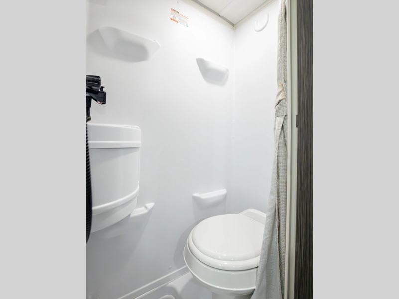 Each one is built with a sealed underbelly with forced heat for added protection against the elements, plus a curved dual-pane acrylic front window with a bug screen and night shade for great outdoor views and natural lighting. You will also find seamless Surf-X kitchen countertops, a central vacuum system, blackout roller shades throughout, and many more comforts.