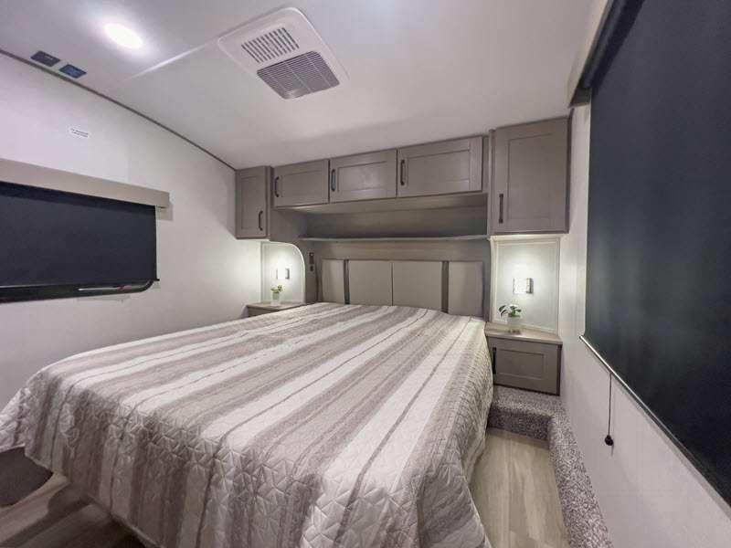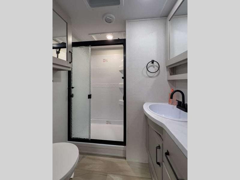 Sleeps 5 Slides 2 Length 32 ft 9 in Ext Width 8 ft Ext Height 12 ft 3 in Hitch Weight 1460 lbs GVWR 10995 lbs Dry Weight 9045 lbs Fresh Water Capacity 55 gals Grey Water Capacity 78 gals Black Water Capacity 39 gals Tire Size ST225/75R15LRE Available Beds Queen Refrigerator Type 12V Refrigerator Size 10 cu ft Cooktop Burners 3 Shower Size 30" x 36" Number of Awnings 2 LP Tank Capacity 30 lbs Water Heater Type On Demand Tankless AC BTU 15000 btu TV Info LR 40" LED HDTV Awning Info 10' 6" & 13' 6" One Touch Electric w/LED Lights Axle Count 2 Number of LP Tanks 2 Shower Type Walk-In Shower Electrical Service 50 amp Similar Floorplans