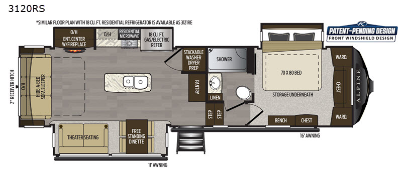 Keystone RV Alpine fifth wheel 3120RS highlights: